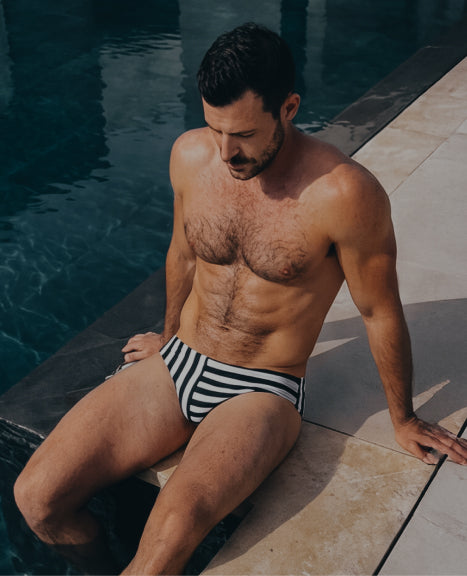 SWIM BRIEF 01 — SIGNATURE CUTWhite & Black Stripe